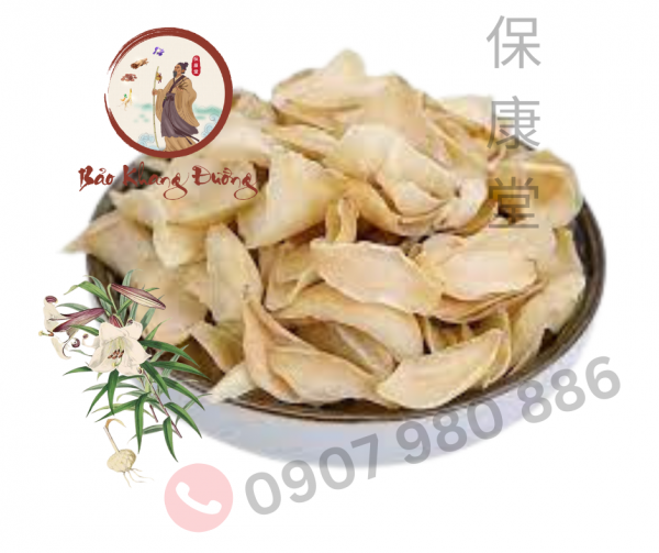 | Thành phần | Bách hợp phiến phơi khô không xông lưu huỳnh. |