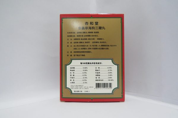 | Thành phần | Hải cẩu tiên; Thục địa; Đỗ trọng; Đương quy; Ba kích thiên; Hoàng kỳ; Sơn thù du; Bạch truật; Thố ty tử; Đông trùng hạ thảo; Cao ly sâm; Cáp giới; Mật ong. |